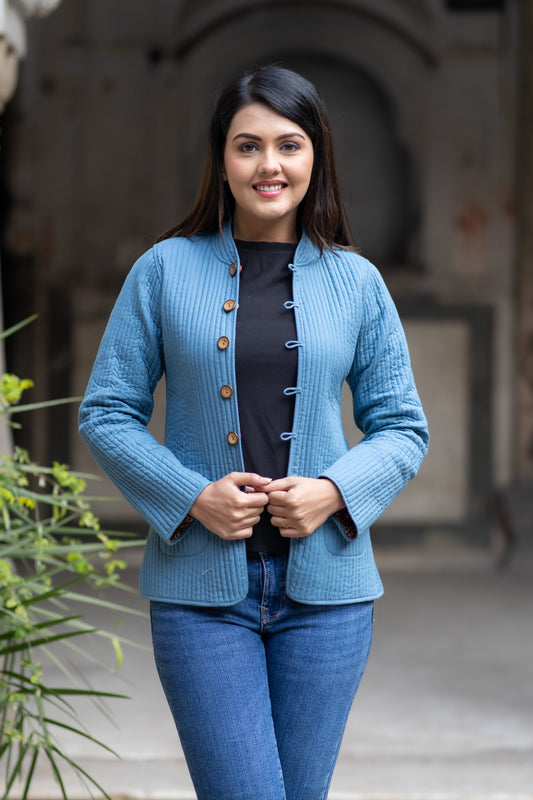 Ajrakh Bukhara Quilted Jacket-NVQJ573