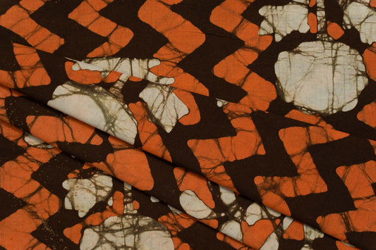 ORANGE BATIK BLOCK PRINTED FABRIC-HF5295