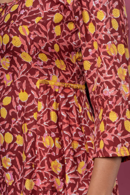 MAROON BLOCK PRINTED ANARKALI DRESS-NFD34
