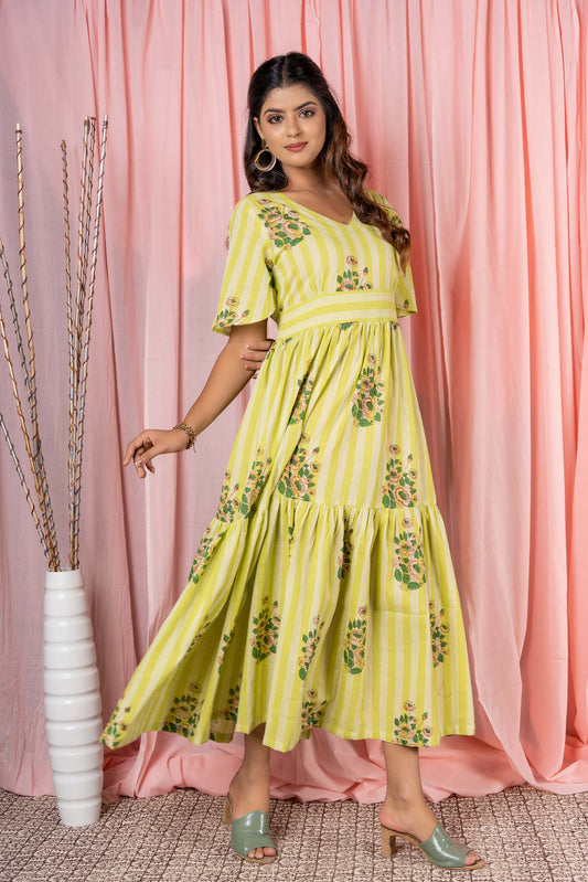 GREEN KHARI COTTON TIERED DRESS-NFD13