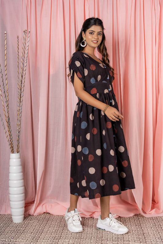AJRAKH BLOCK PRINTED GATHER DRESS-NFD21