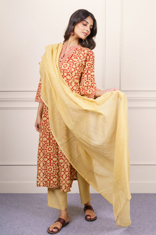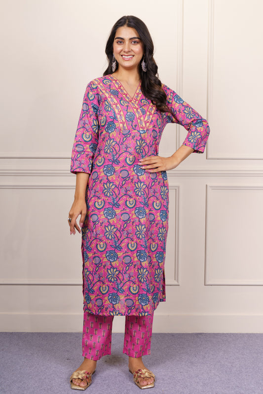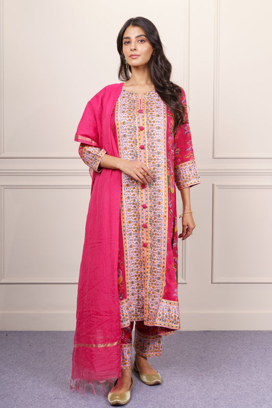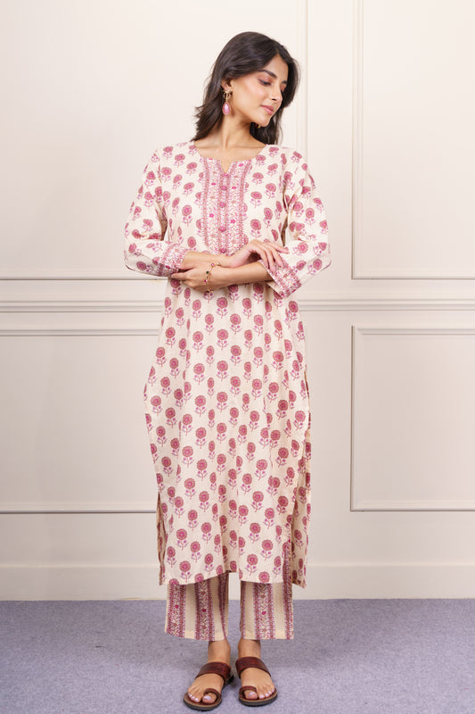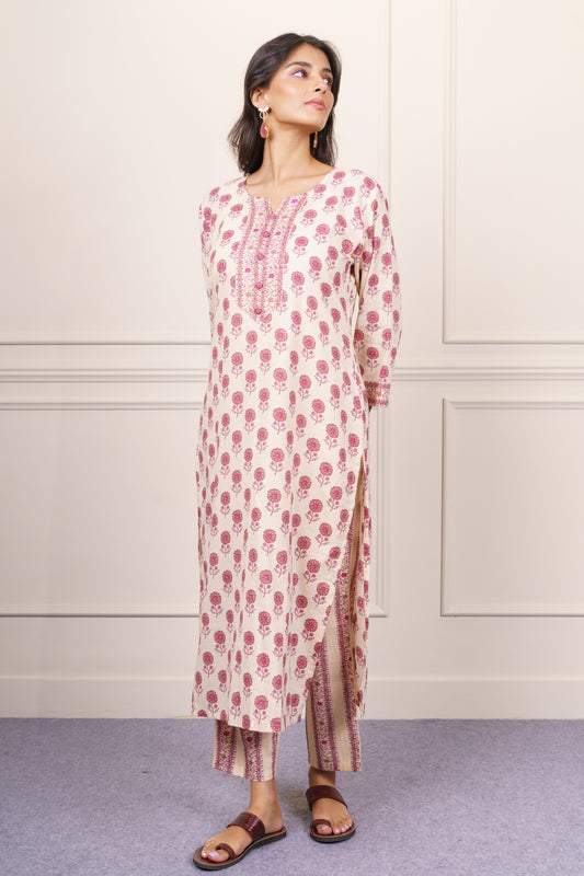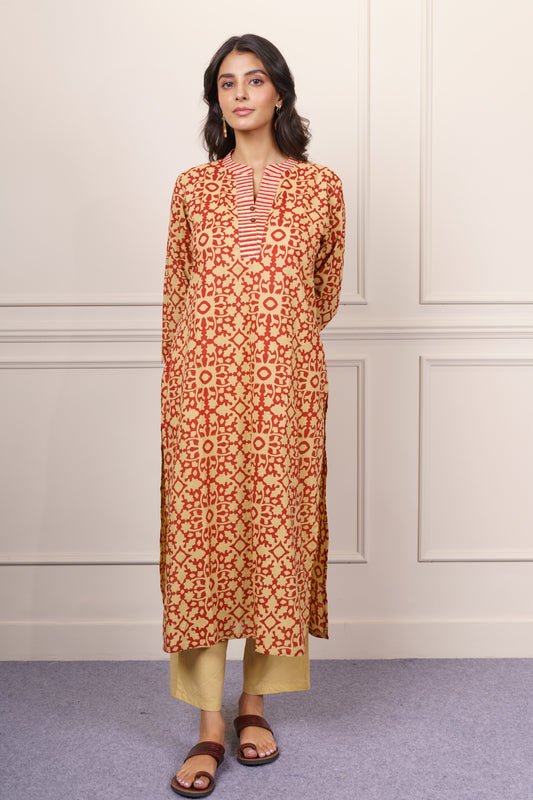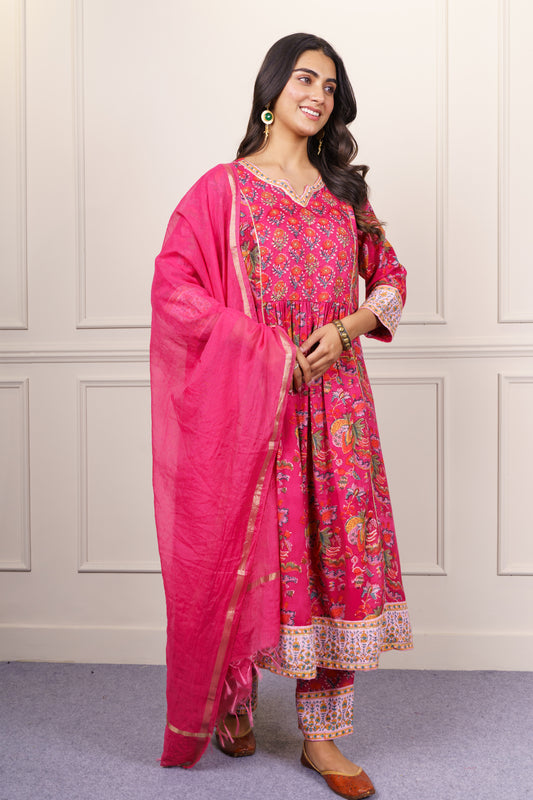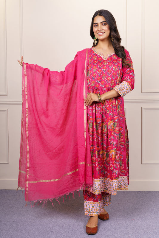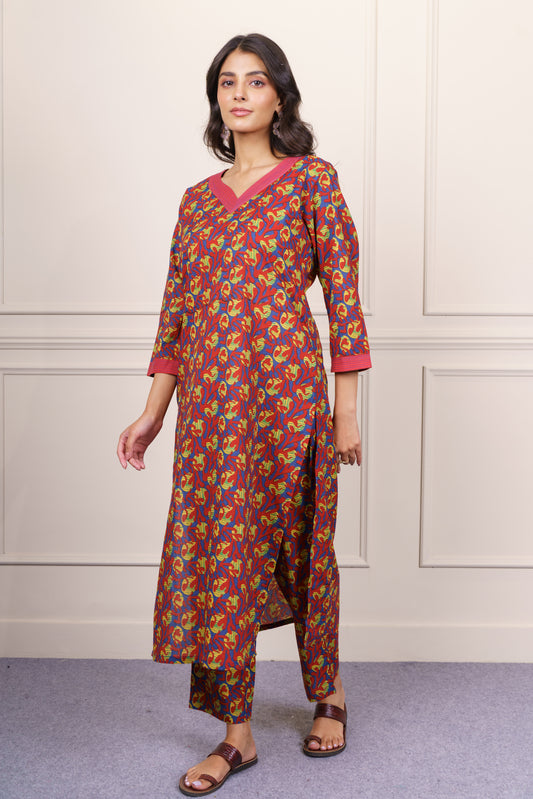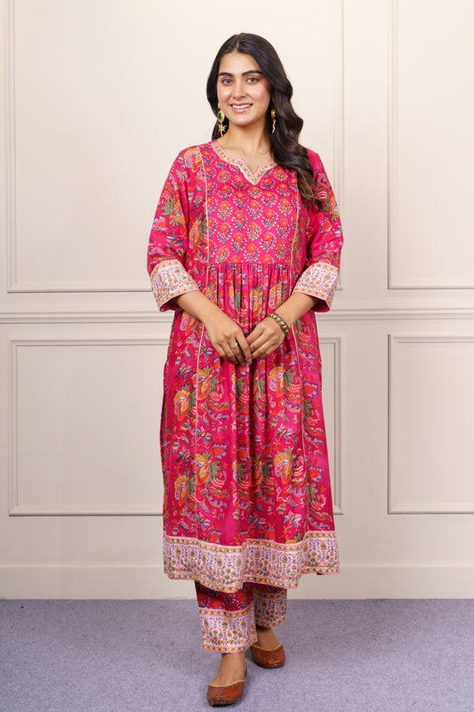 Pink Red Block Printed Cotton Kaftan -NVK546