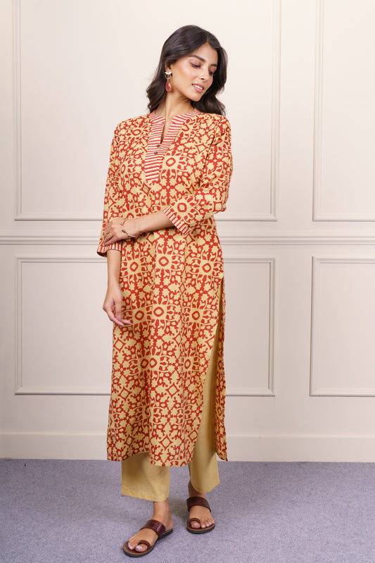 Multicolor Block Printed Cotton Kaftan -NVK547