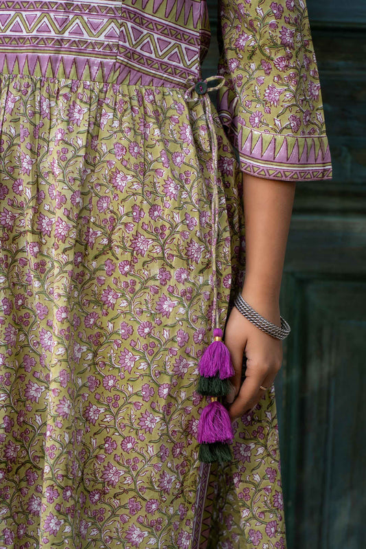GREEN BLOCK PRINTED COTTON KAFTAN-NVK399