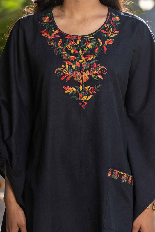 BLACK EMBROIDERED KHARI COTTON KAFTAN-NVK396