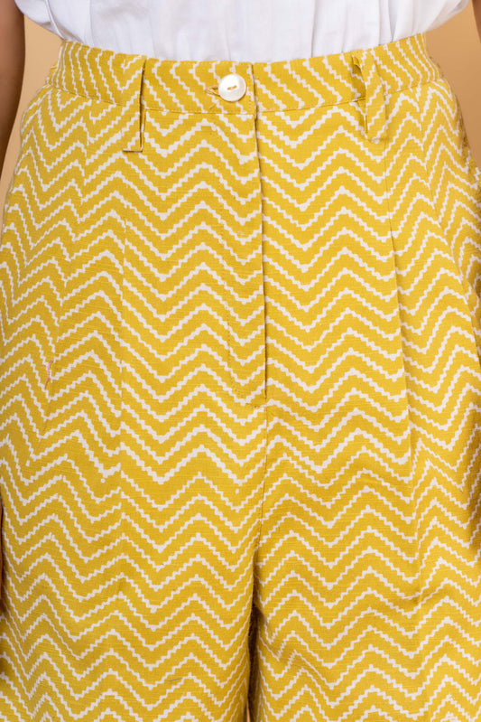 YELLOW COTTON EMBROIDERED HIGH WAIST PANT-NFB24