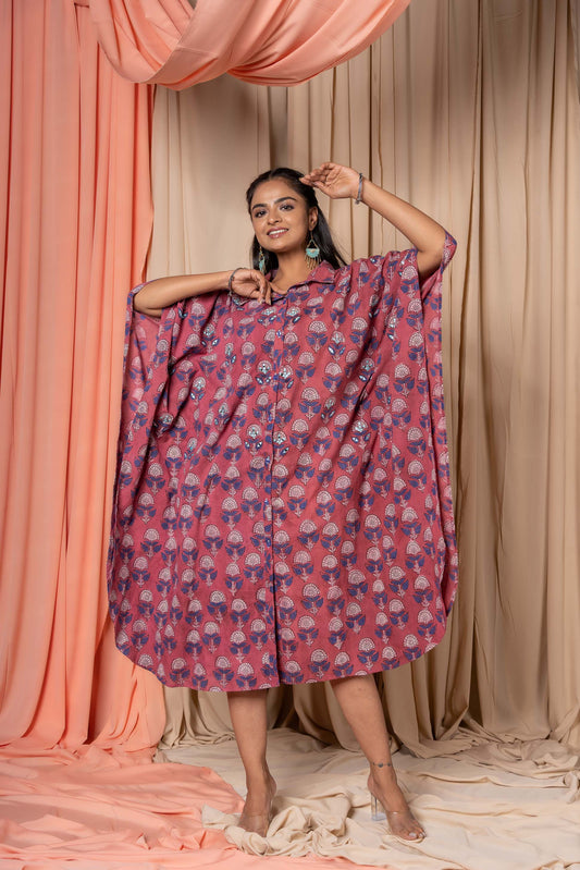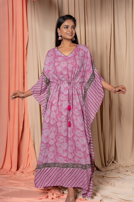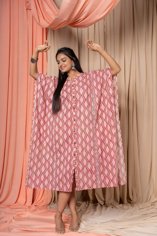 PINK BLOCK PRINTED COTTON KAFTAN-NVK335