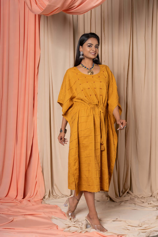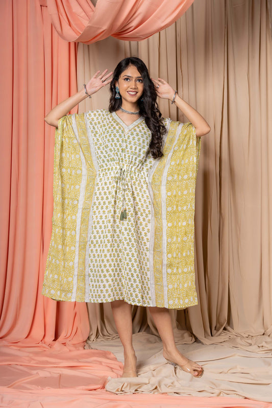 GOLDEN MUSTARD CHECKS COTTON KAFTAN-NVK349