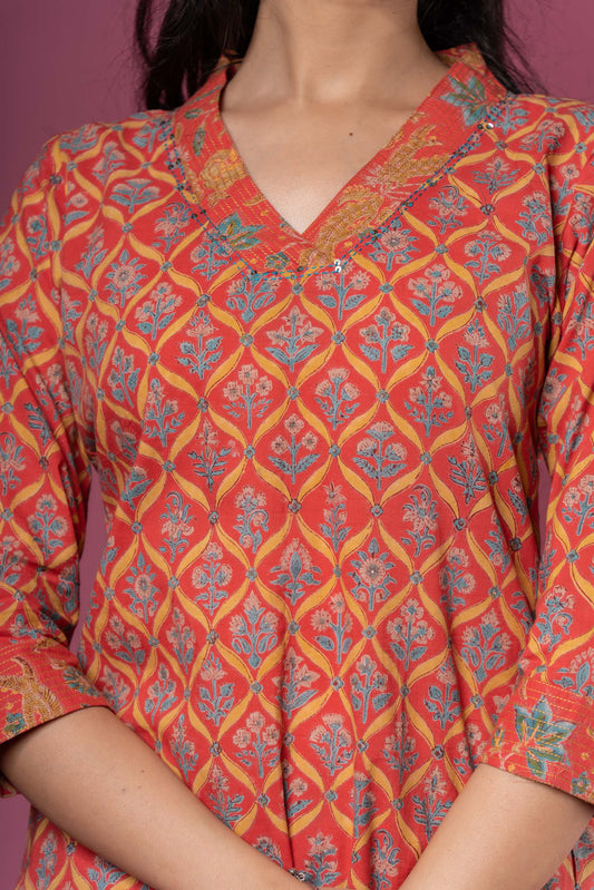 TANGO RED BLOCK PRINTED KURTA -KS489