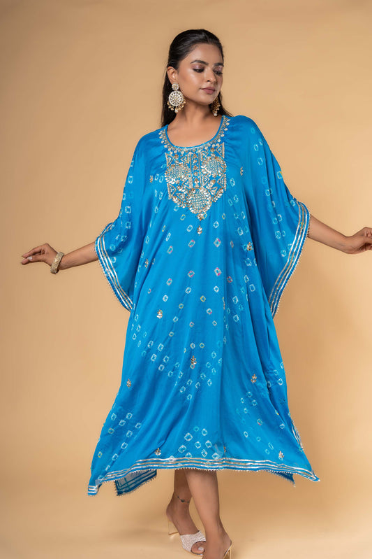 BLUE BANDHEJ HAND WORK KAFTAN-NVK322