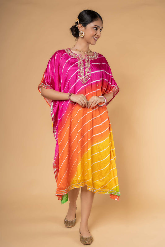MULTICOLOR LEHARIYA HAND WORK KAFTAN-NVK323
