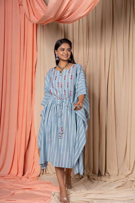 BLUE KHARI COTTON EMBROIDERED KAFTAN-NVK348