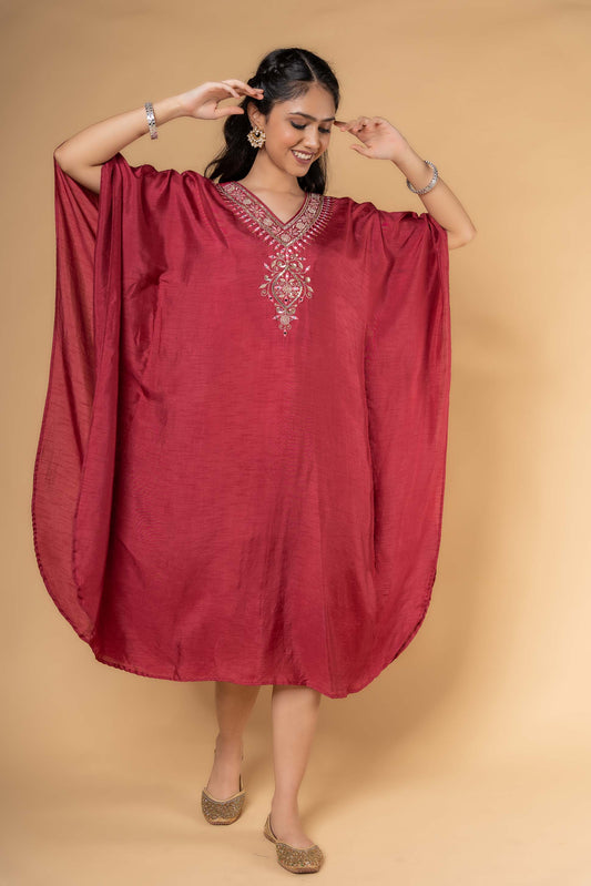 MAROON DOLA SILK KAFTAN-NVK325