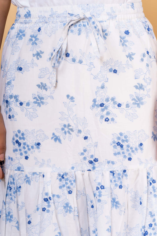 WHITE BLUE BLOCK PRINTED FRILL SKIRT-NFB08