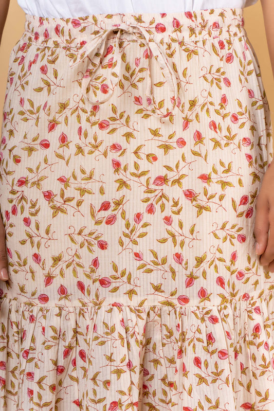 PINK GREY KANTHA BLOCK PRINTED FRILL SKIRT-NFB07