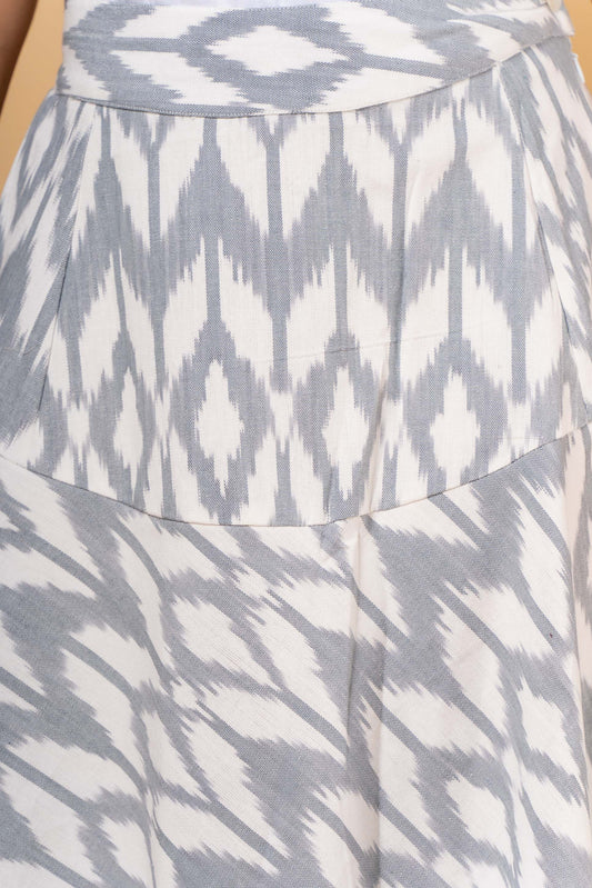 GREY WHITE IKAT KNEE LENGTH FLAIRED SKIRT-NFB03