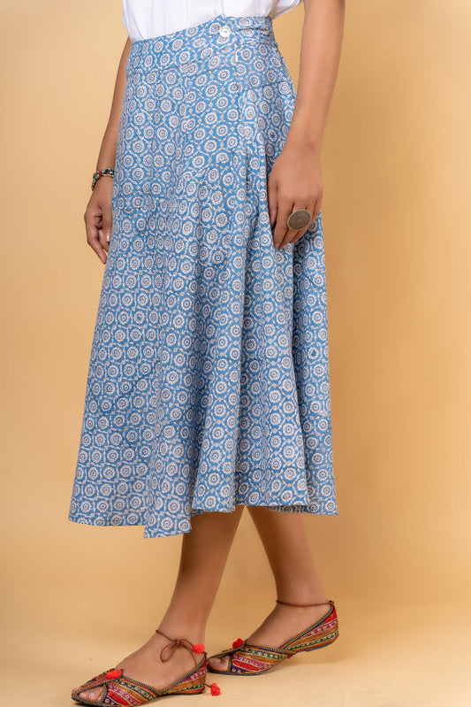 BLUE BLOCK PRINTED FLAIRED SKIRT-NFB04