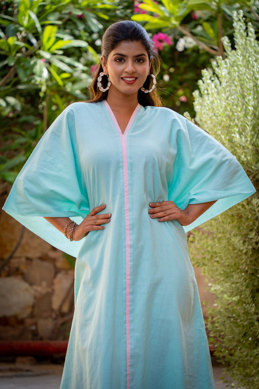 BLUE DOUBLE LAYER MULMUL KAFTAN-NVK317