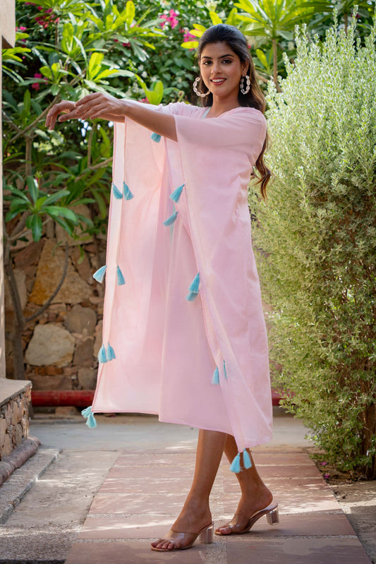 BABY PINK DOUBLE LAYER MULMUL KAFTAN-NVK319