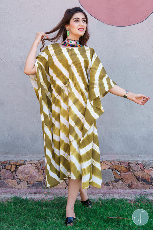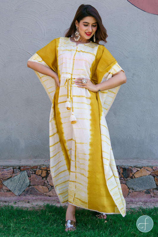 MUSTARD SHIBORI COTTON KAFTAN DRESS-NVK202
