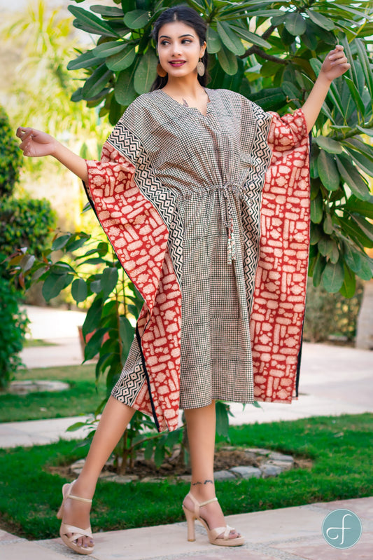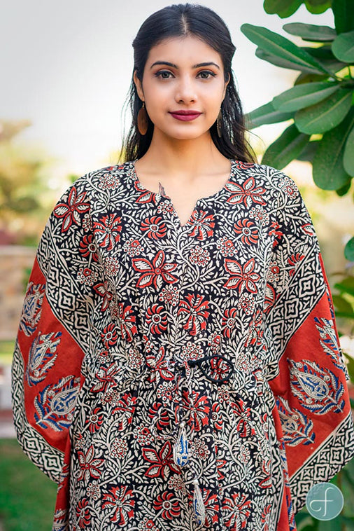 BAGRU RED BLACK COTTON KAFTAN DRESS-NVK151