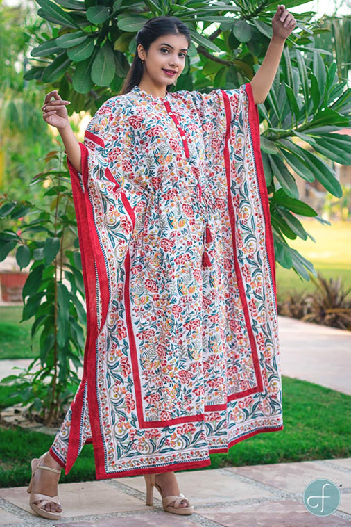 RED FLORAL BLOCK PRINT KAFTAN -NVK190