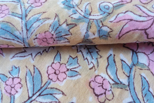 FLORAL HAND BLOCK PRINTED COTTON FABRIC-HF6433