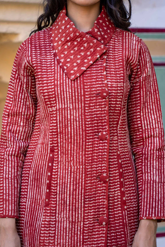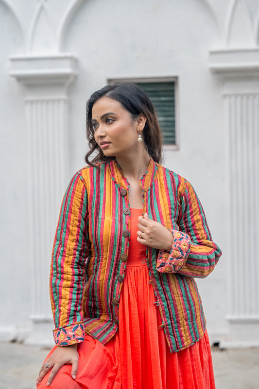 Even in the modern era, there are lots of people who still love to wear cotton clothes. Cotton stuff makes you feel comfortable and its soothing colors keep you cool in summers. Jackets that can be worn in summers as well as winters are, Indian cotton quilted jackets. They are known for their designs and fabric across the world. Women love to wear designer and fashionable clothes. But most of the designer clothes are not comfortable. But quilted jackets for women manufactured at Navyasfashion are both, designer and comfortable. Don’t think of price, just go through the website and our eye catching patterns will not let you think. Our stylish and unique designs make us different from the crowd. Don’t waste time; buy your favorite reversible quilted jackets.