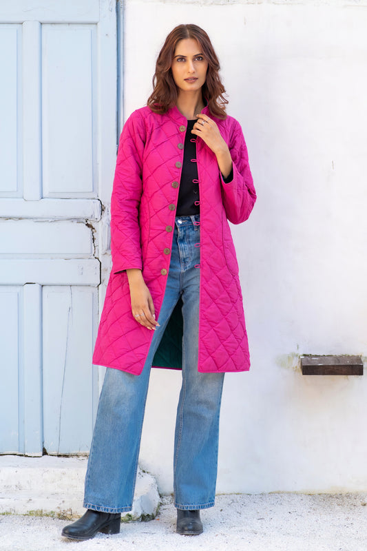 The combination of reversible quilted jacket in cotton is rare. Usually, jackets are meant for winters, but with a composite like this, it is surely going to make your summers rock too. Cotton is the best friend for summer. Now, you can think of wearing amazing women quilted jackets in summers too! Moreover, quilted jacket women can use to cover those deep-necked dresses, while you travel.