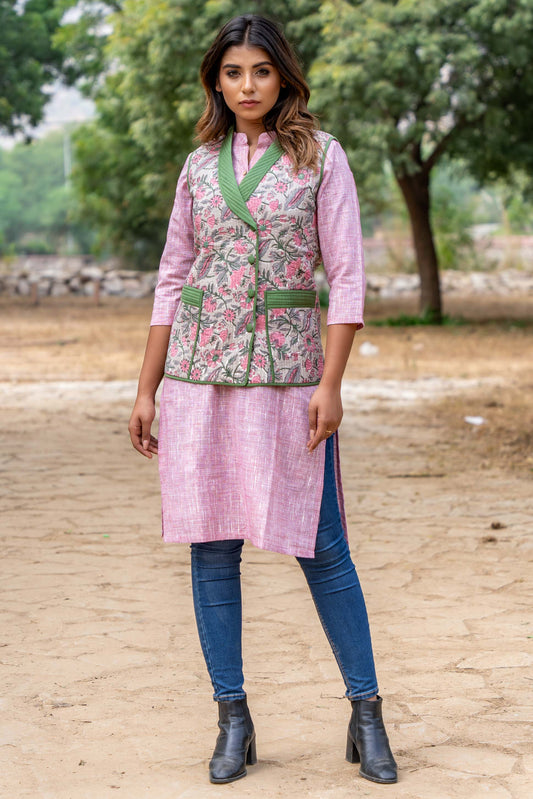 Even in the modern era, there are lots of people who still love to wear cotton clothes. Cotton stuff makes you feel comfortable and its soothing colors keep you cool in summers. Jackets that can be worn in summers as well as winters are, Indian cotton quilted jackets. They are known for their designs and fabric across the world. Women love to wear designer and fashionable clothes. But most of the designer clothes are not comfortable. But quilted jackets for women manufactured at Navyasfashion are both, designer and comfortable. Don’t think of price, just go through the website and our eye catching patterns will not let you think. Our stylish and unique designs make us different from the crowd. Don’t waste time; buy your favorite reversible quilted jackets.