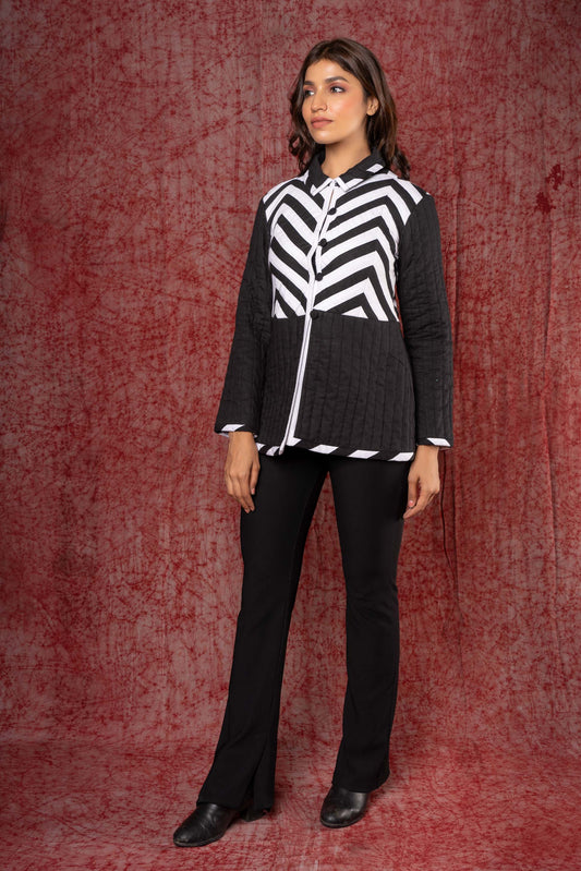 Black Block Printed Quilted Reversible Jacket-NVQJ369