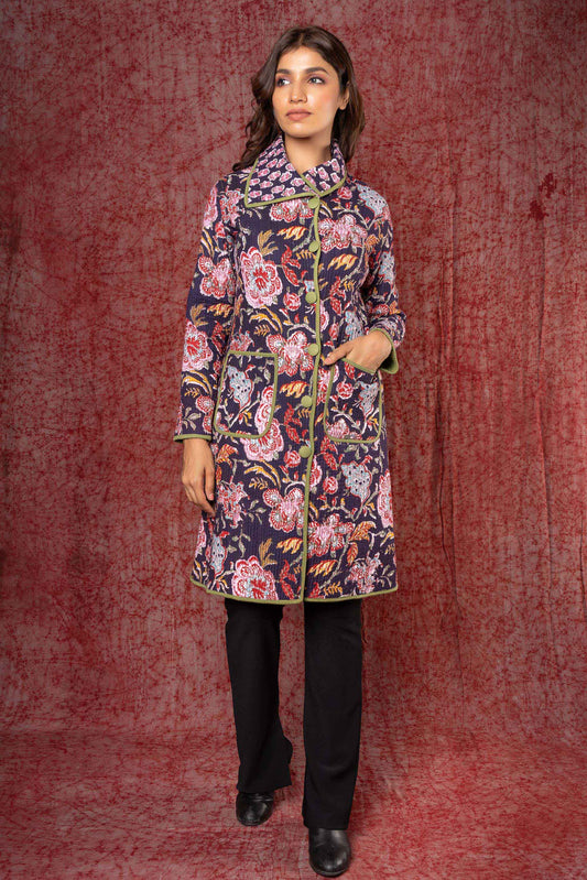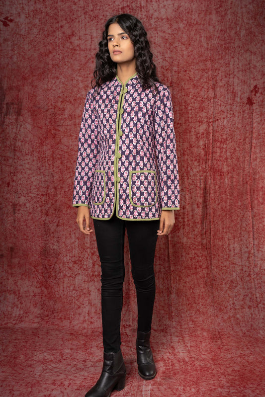 Blue Reversible Block Printed Quilted Jacket- NVQJ363