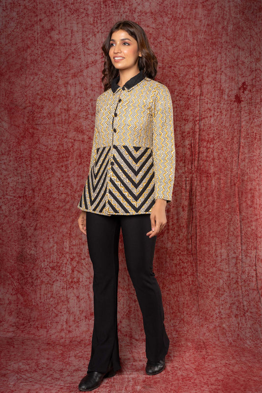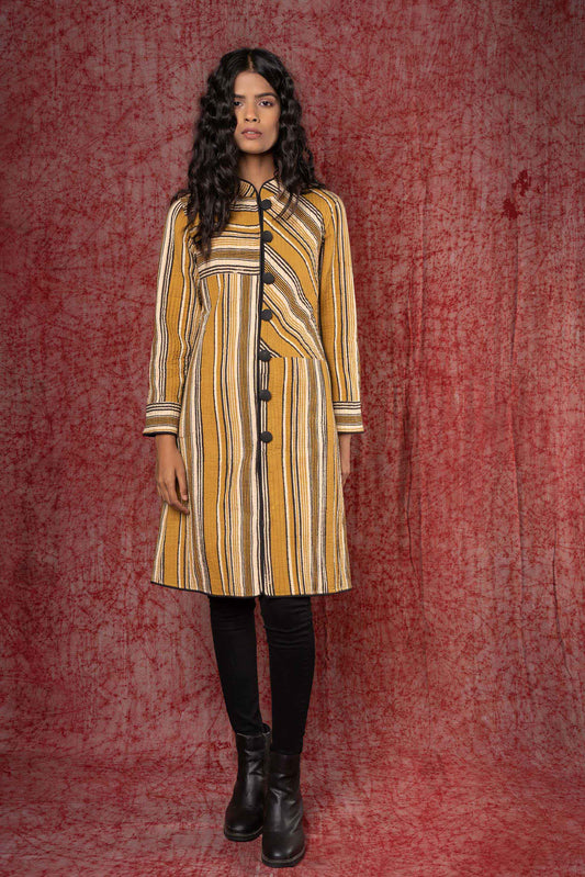 Bagru Mustard Quilted Applique Jacket-NVQJ371