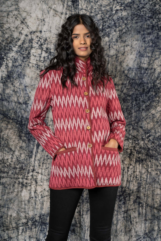 Pink Ikat High Collar Quilted Jacket-NVQJ372