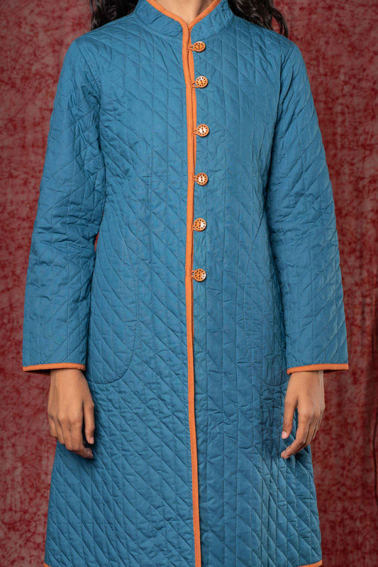 Blue Cotton Quilted Reversible Bukhara Coat-NVQJ384