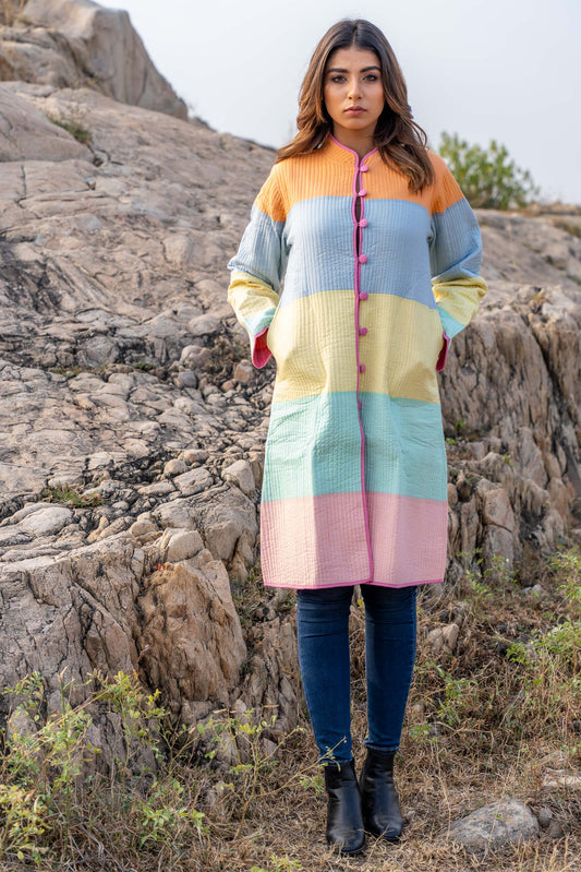 Tricolor Ikat Quilted Bukhara Coat-NVQJ333