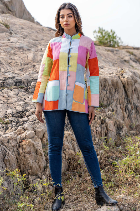 Multicolor Patchwork Reversible Quilted Jacket- NVQJ341