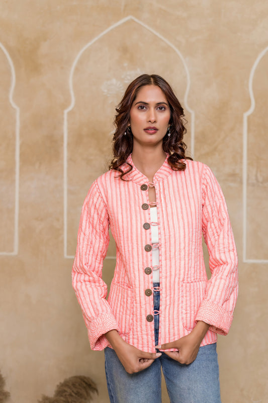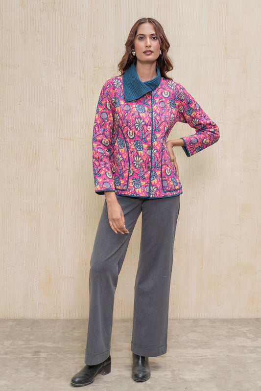 Even in the modern era, there are lots of people who still love to wear cotton clothes. Cotton stuff makes you feel comfortable and its soothing colors keep you cool in summers. Jackets that can be worn in summers as well as winters are, Indian cotton quilted jackets. They are known for their designs and fabric across the world. Women love to wear designer and fashionable clothes. But most of the designer clothes are not comfortable. But quilted jackets for women manufactured at Navyasfashion are both, designer and comfortable. Don’t think of price, just go through the website and our eye catching patterns will not let you think. Our stylish and unique designs make us different from the crowd. Don’t waste time; buy your favorite reversible quilted jackets.