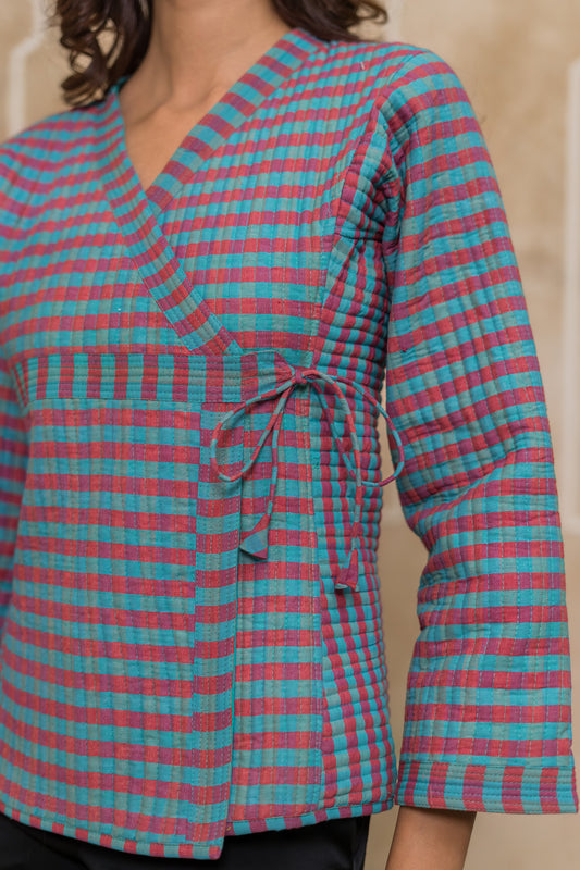 Checks Khari Handloom Angrakha Jacket-NVQJ626