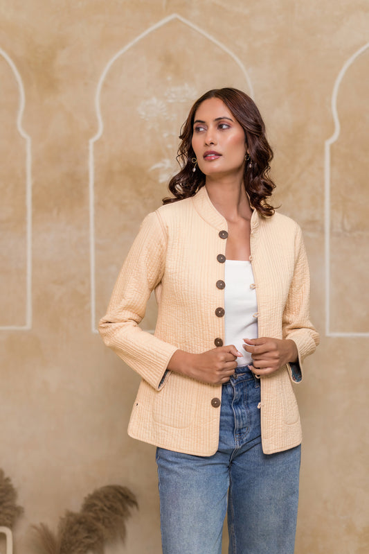 The combination of reversible quilted jacket in cotton is rare. Usually, jackets are meant for winters, but with a composite like this, it is surely going to make your summers rock too. Cotton is the best friend for summer. Now, you can think of wearing amazing women quilted jackets in summers too! Moreover, quilted jacket women can use to cover those deep-necked dresses, while you travel.
