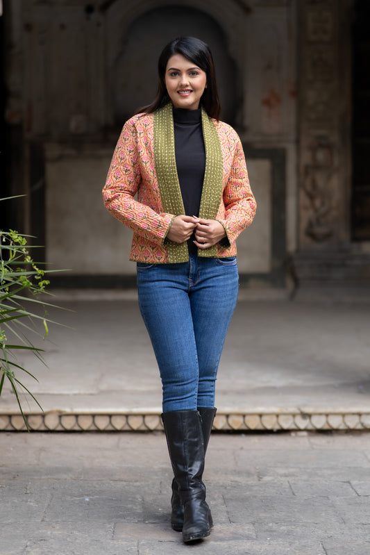 Peach Bukhara Quilted Jacket-NVQJ614