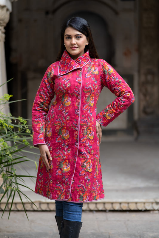 Even in the modern era, there are lots of people who still love to wear cotton clothes. Cotton stuff makes you feel comfortable and its soothing colors keep you cool in summers. Jackets that can be worn in summers as well as winters are, Indian cotton quilted jackets. They are known for their designs and fabric across the world. Women love to wear designer and fashionable clothes. But most of the designer clothes are not comfortable. But quilted jackets for women manufactured at Navyasfashion are both, designer and comfortable. Don’t think of price, just go through the website and our eye catching patterns will not let you think. Our stylish and unique designs make us different from the crowd. Don’t waste time; buy your favorite reversible quilted jackets.