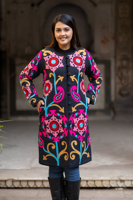 Suzani Embroidered Reversible Black Jacket-NVQJ592