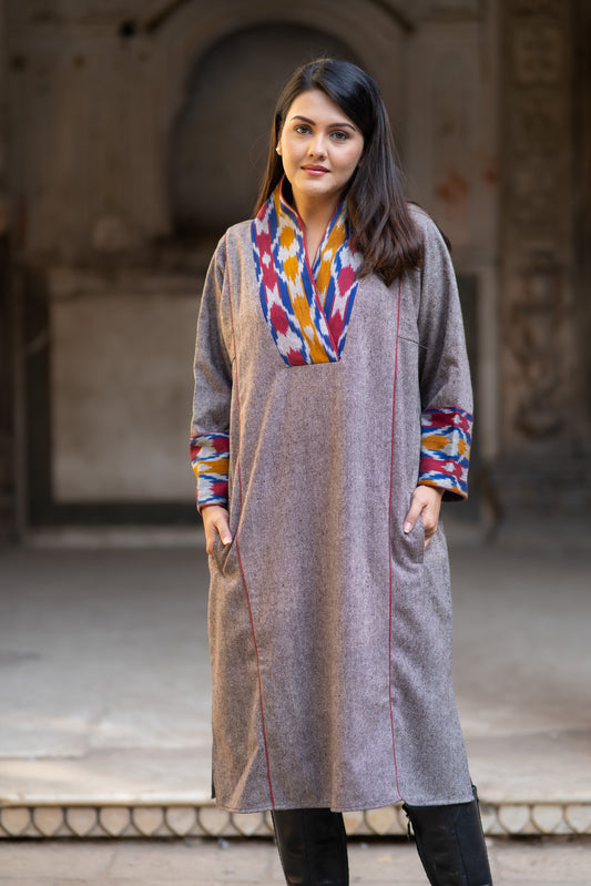 Tweed Wool Phiren Kurta Jacket-NVQJ593