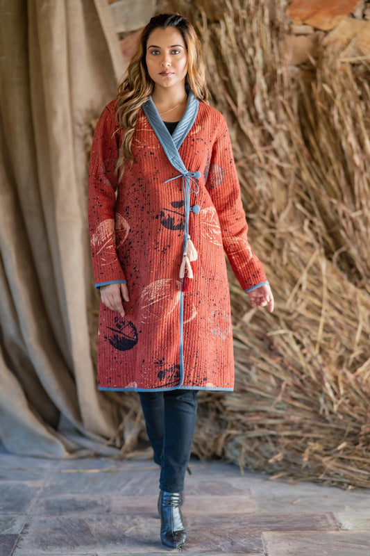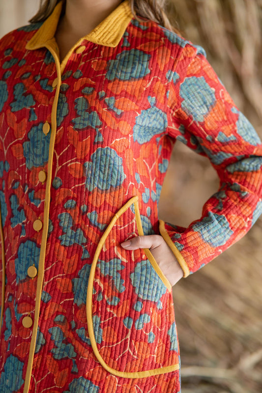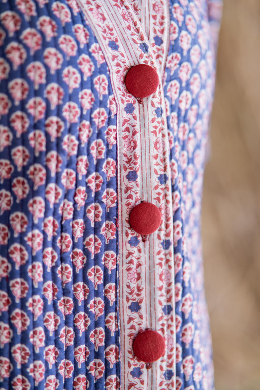 Ajrakh Block Printed Quilted Jacket- NVQJ468