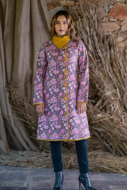 Violet Block Printed Quilted Bukhara Jacket- NVQJ481