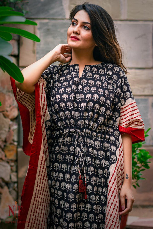 The other reason which compels our happy customers to choose us over other retailers is the fact that our block print kaftans are solely made in India and that each block print signifies a diverse culture and tradition of India. Another thing is the fact that Kaftans can be used in any form. Block printed kaftans can be used as a party wear. Owing to their comfort factor, kaftans also make up one of best night options as well.