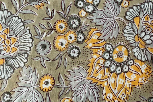 Floral Hand Block Printed Running Fabric Natural Dyed Dress Materiel HF6402