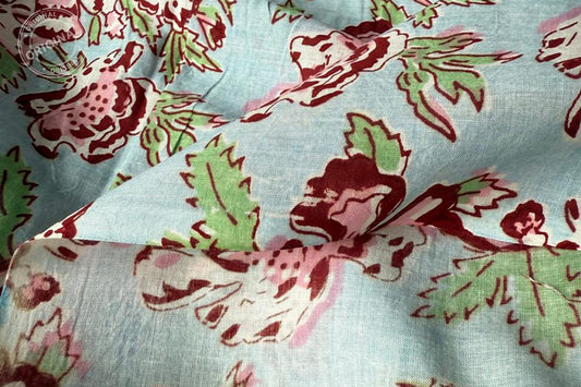 Sky Blue Floral Hand Block Printed Running Fabric Natural Dyed Dress Materiel HF6407