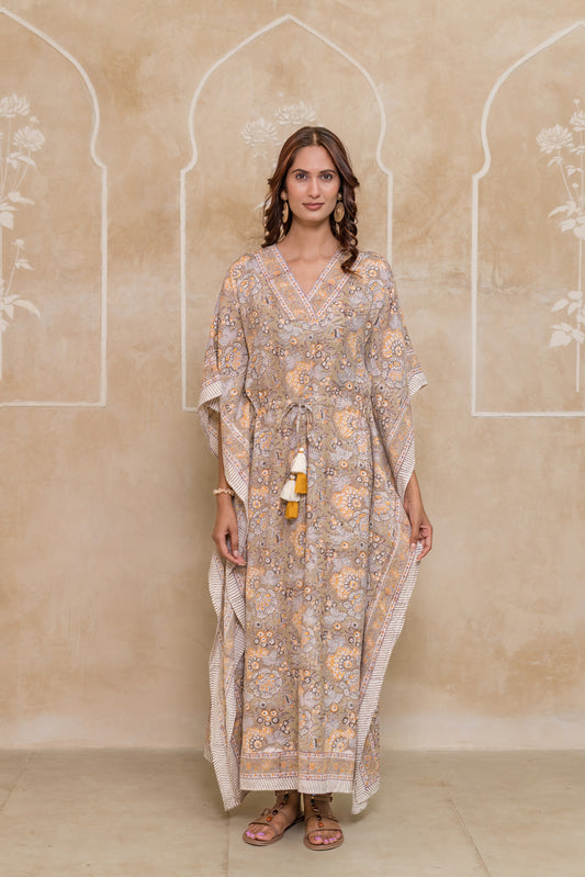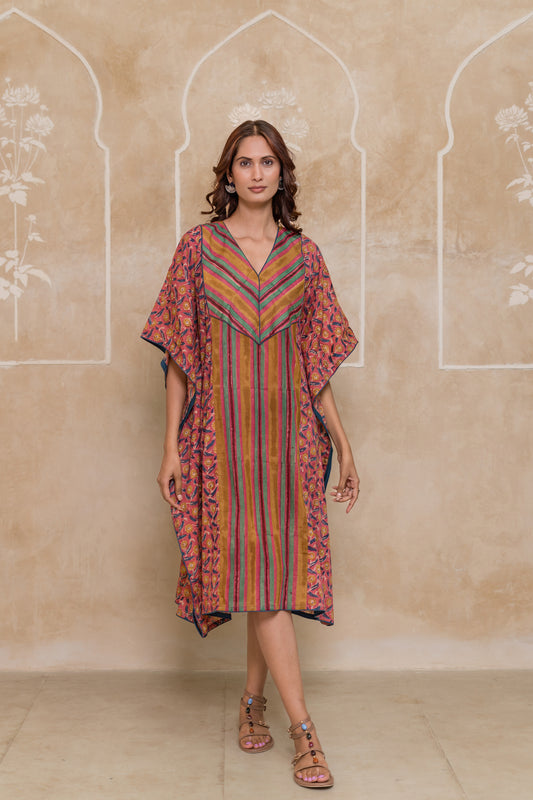 Multicolor Block Printed Cotton Kaftan -NVK547